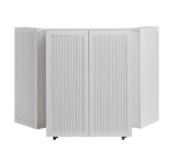 This elegant bar server adds modern style and understated elegance to any contemporary lounge or dining room. It provides ample shelf and storage space for beverages. If you want to maximize your living space without sacrificing style, this bar cabinet is a great idea. It also functions as a server sideboard or a bookshelf. The gorgeous craftsmanship of the wooden doors provides an ideal place to store your drink collection.